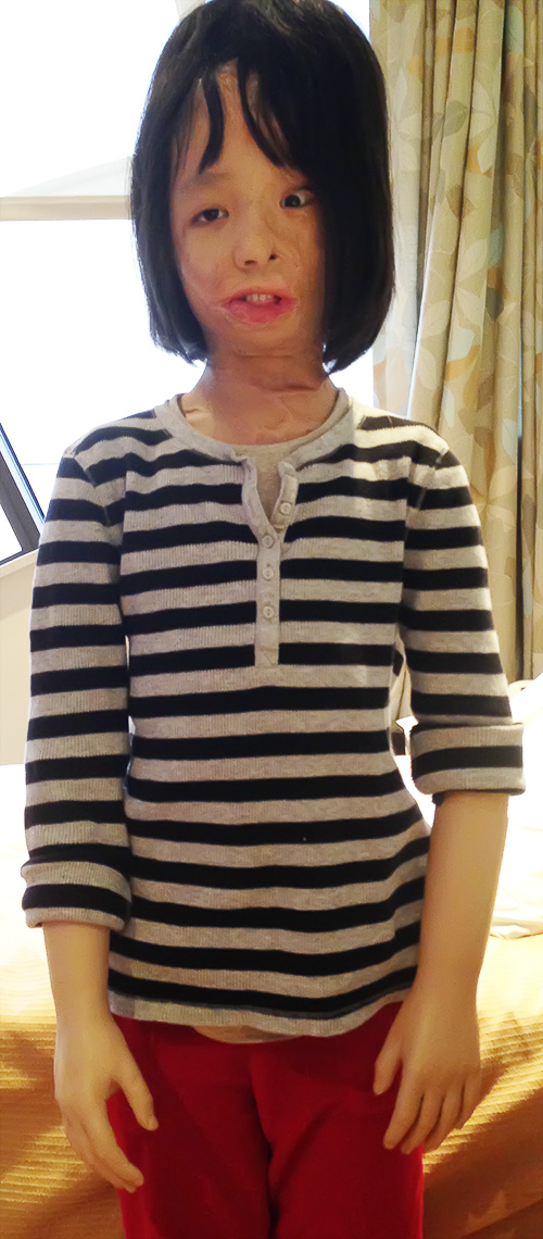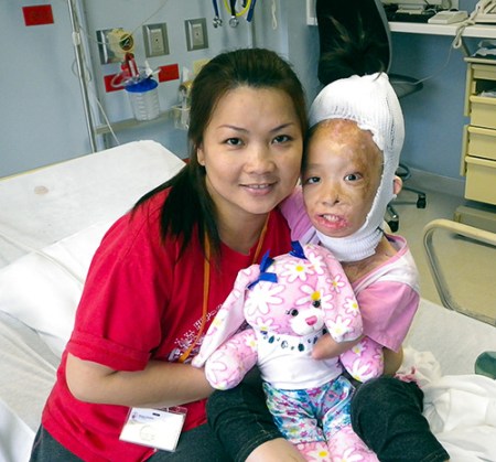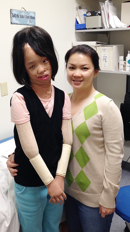Boun Lod’s first surgery for this round, in mid November 2013, was to have the same procedure done on the other side of her scalp. An expander was implanted and then gradually filled with saline. After about eight weeks, the expander was removed and the hair moved.